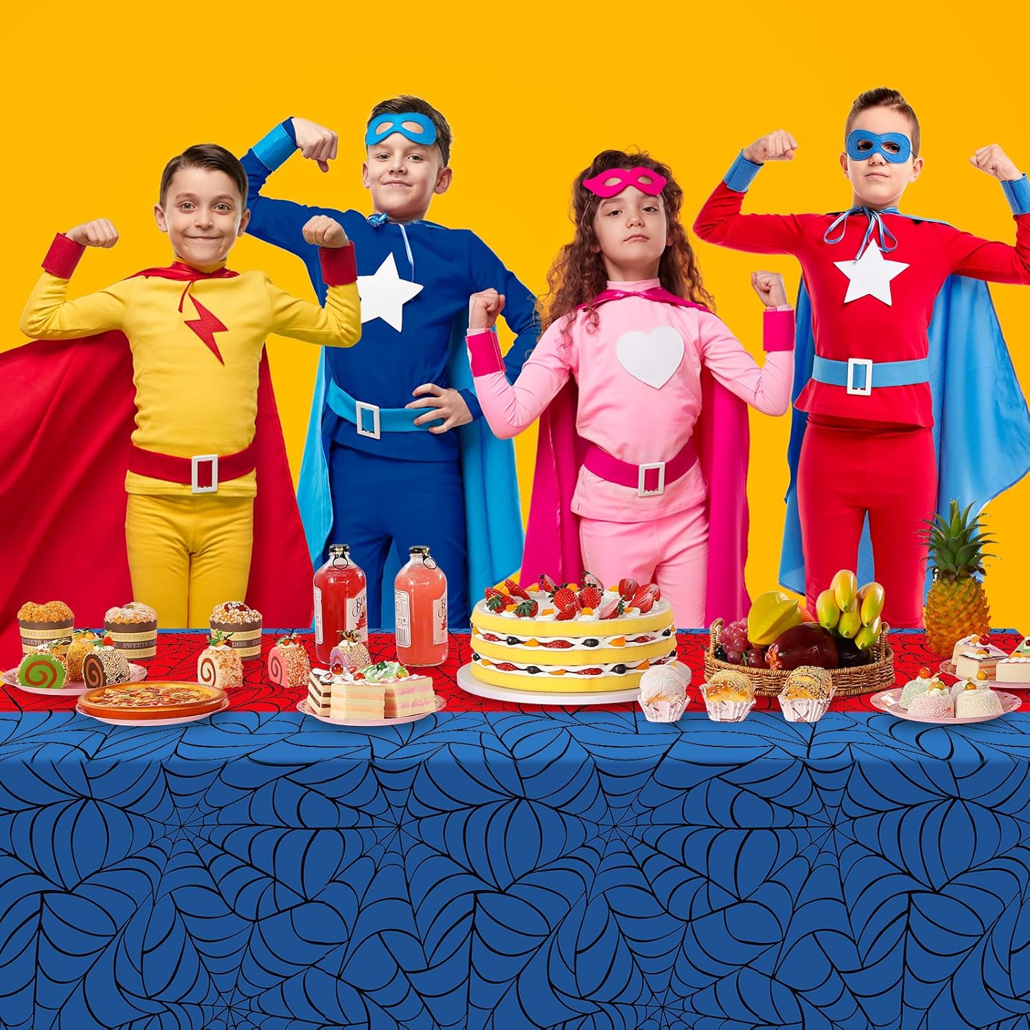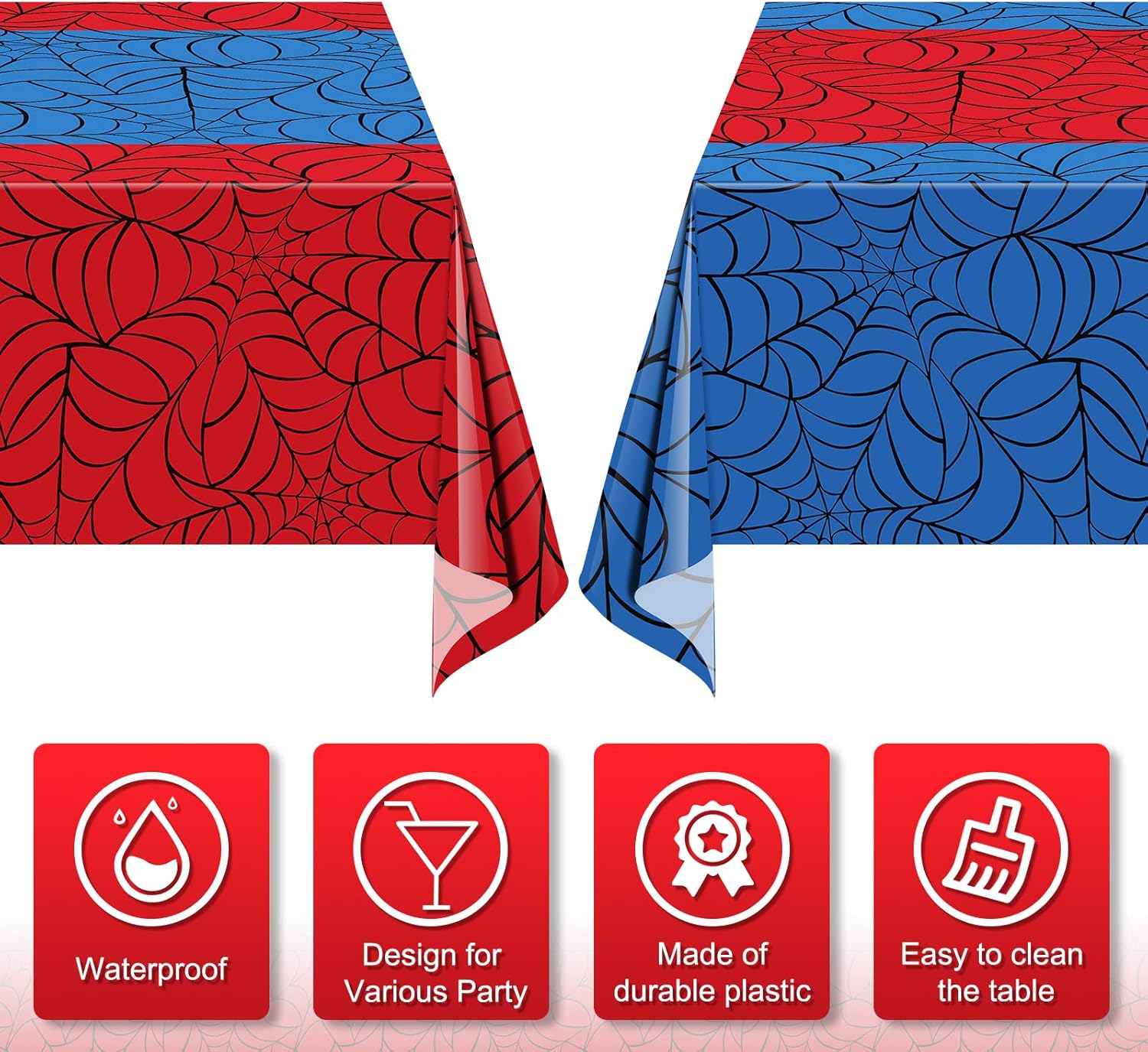- Package Includes: you will get 4pcs spider web table cloths, designed with black webs,2 pcs is blue background with red runner,the other 2pcs are red background with blue runner,suitable for decorating in any kids birthday parties