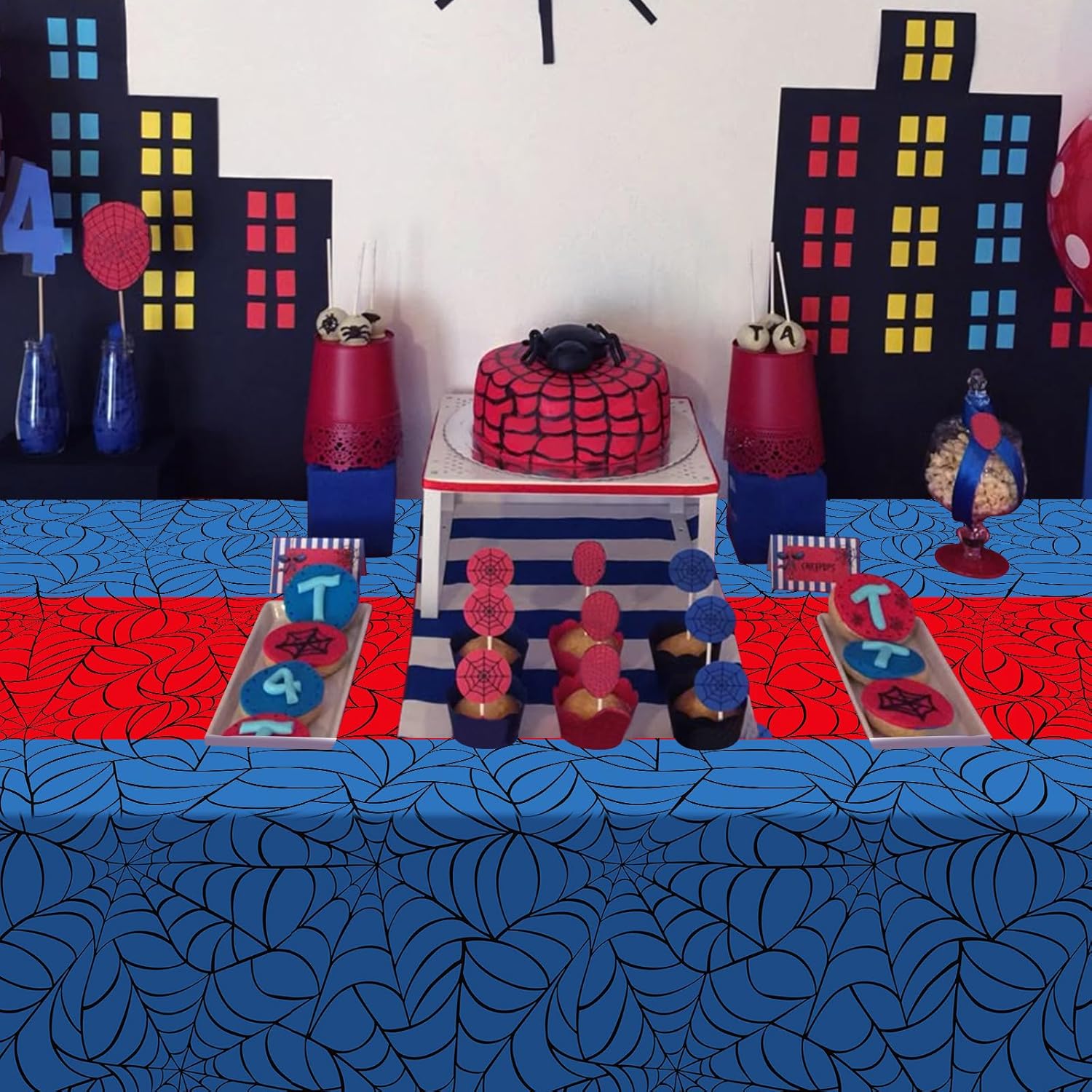 - Package Includes: you will get 3pcs blue red spider web table cloths, designed with black webs on blue background and with red runner ,suitable for decorating in any kids birthday parties