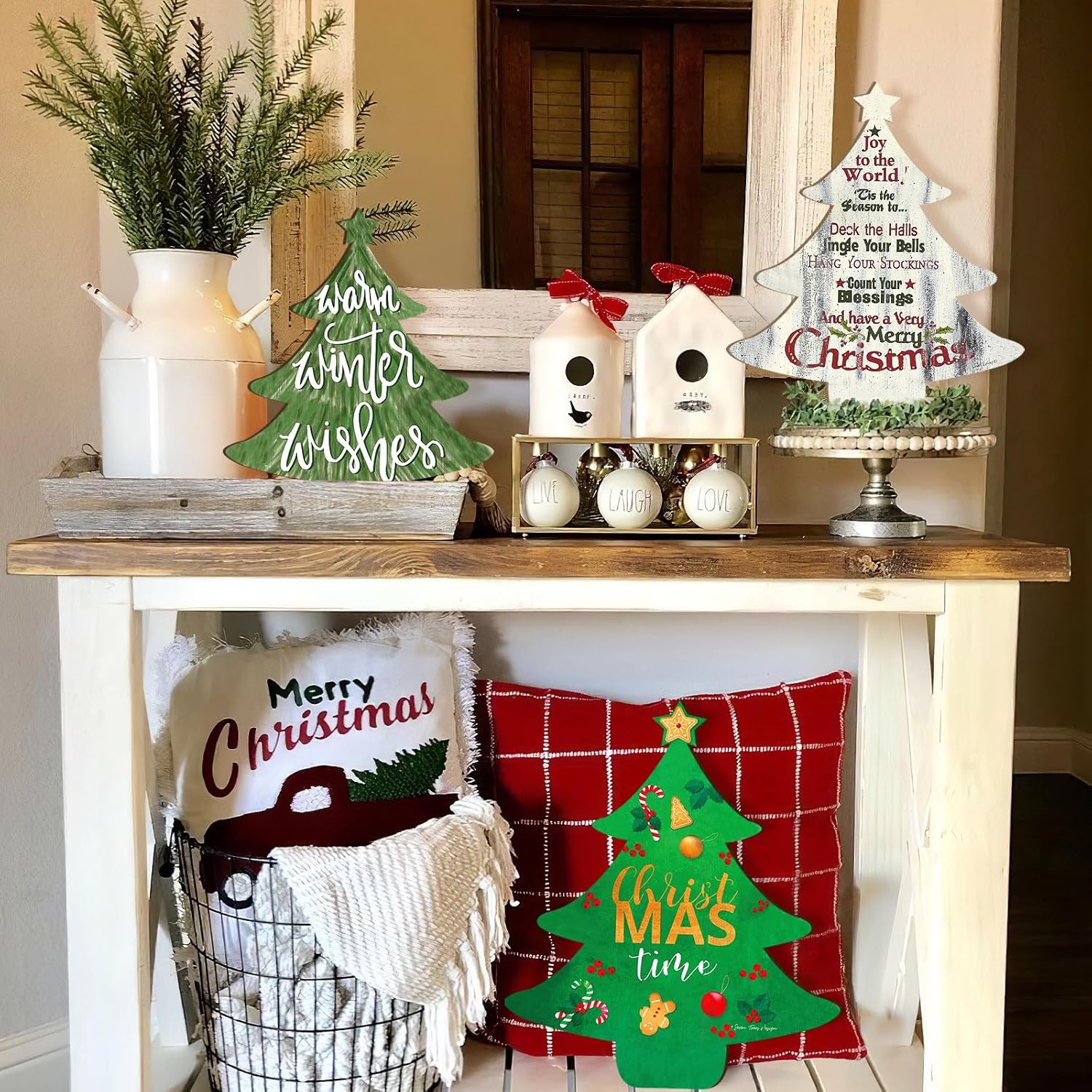 Wooden Christmastree Ornaments for Paint Christmas Decorations Cutouts Unfinished 6Pack, Wood Christmastree for Crafts DIY Blank Cutouts Ornament Winter New Year Decorations 3 Size