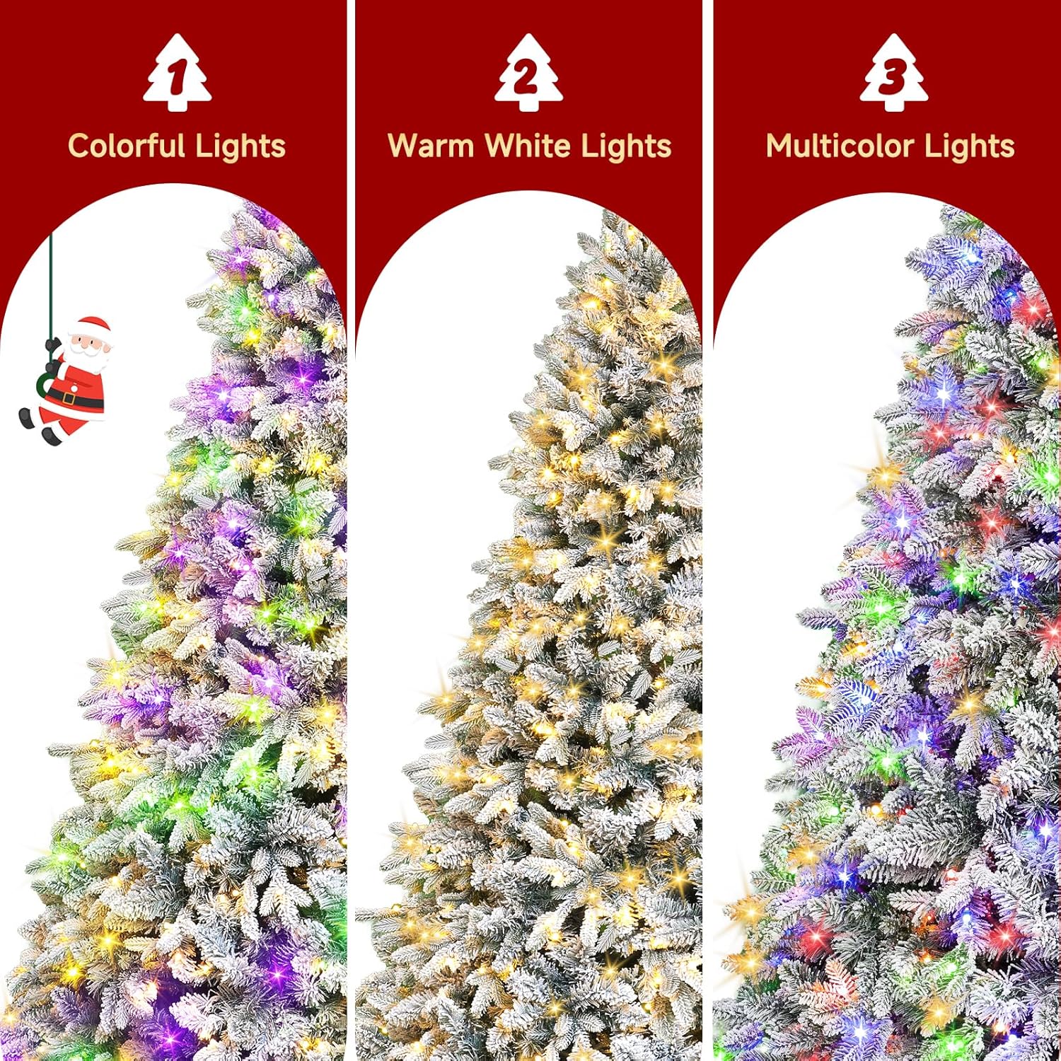 7.5ft Pre-Lit Snow Flocked Rotating Christmas Tree with 470 Multi-Color LED Lights, 1470 PE & PVC Tips - Realistic Artificial Tree for Holiday Decor