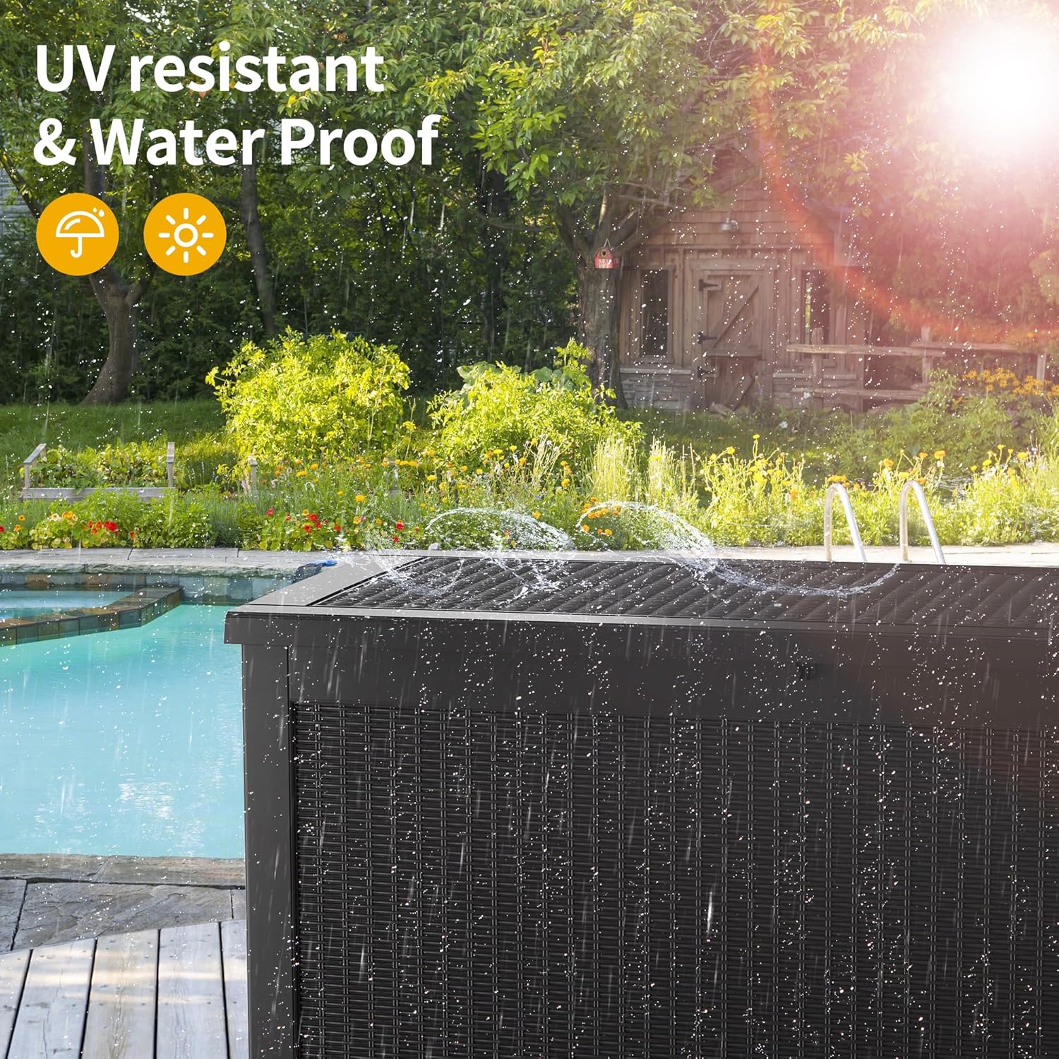 320 Gallon Outdoor Storage Box Waterproof Lockable Resin Deck Box Large, Patio Storage Bin for Pool Accessories Cushion Furniture, Garden Tools, UV-Resistant Outside Delivery Black