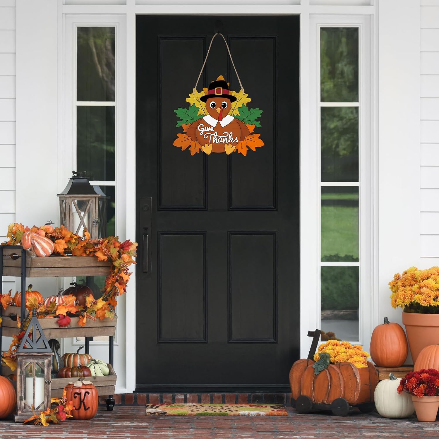 - Wide Application: This turkey hanging decor is perfect for decorating homes, gardens, farmhouse, parties in thanksgiving style. Hang them on doorway, window, wall, balcony, yard and anywhere you like. Hanging it on the front door, back door, room door, wall position near the entrance, can add more festive atmosphere!