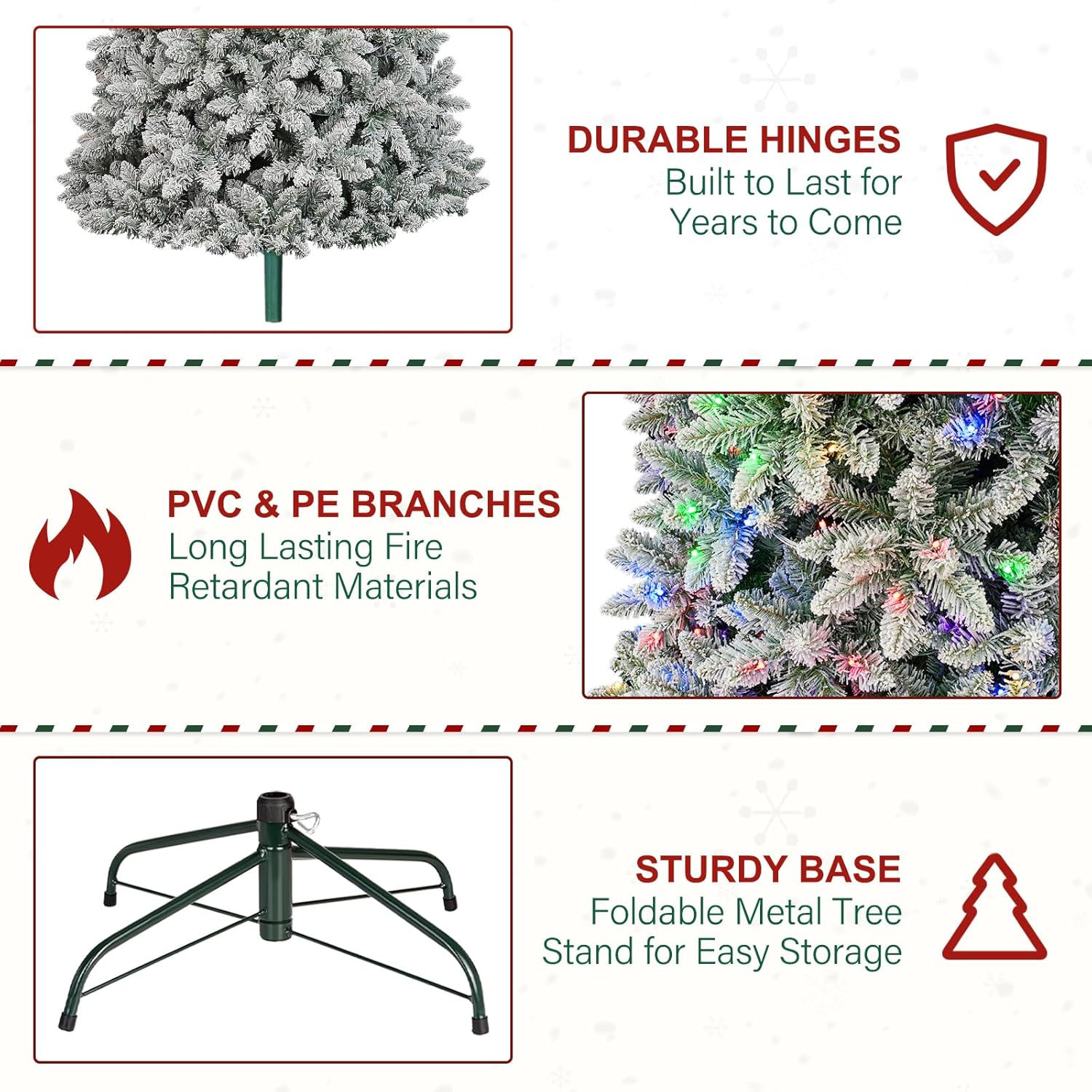 - Premium Materials: The PVC material is also fire resistant. Realistic powdered snow covers the artificial branches to bring the joy of a snowy winter day indoors. It's the perfect touch for Christmas.