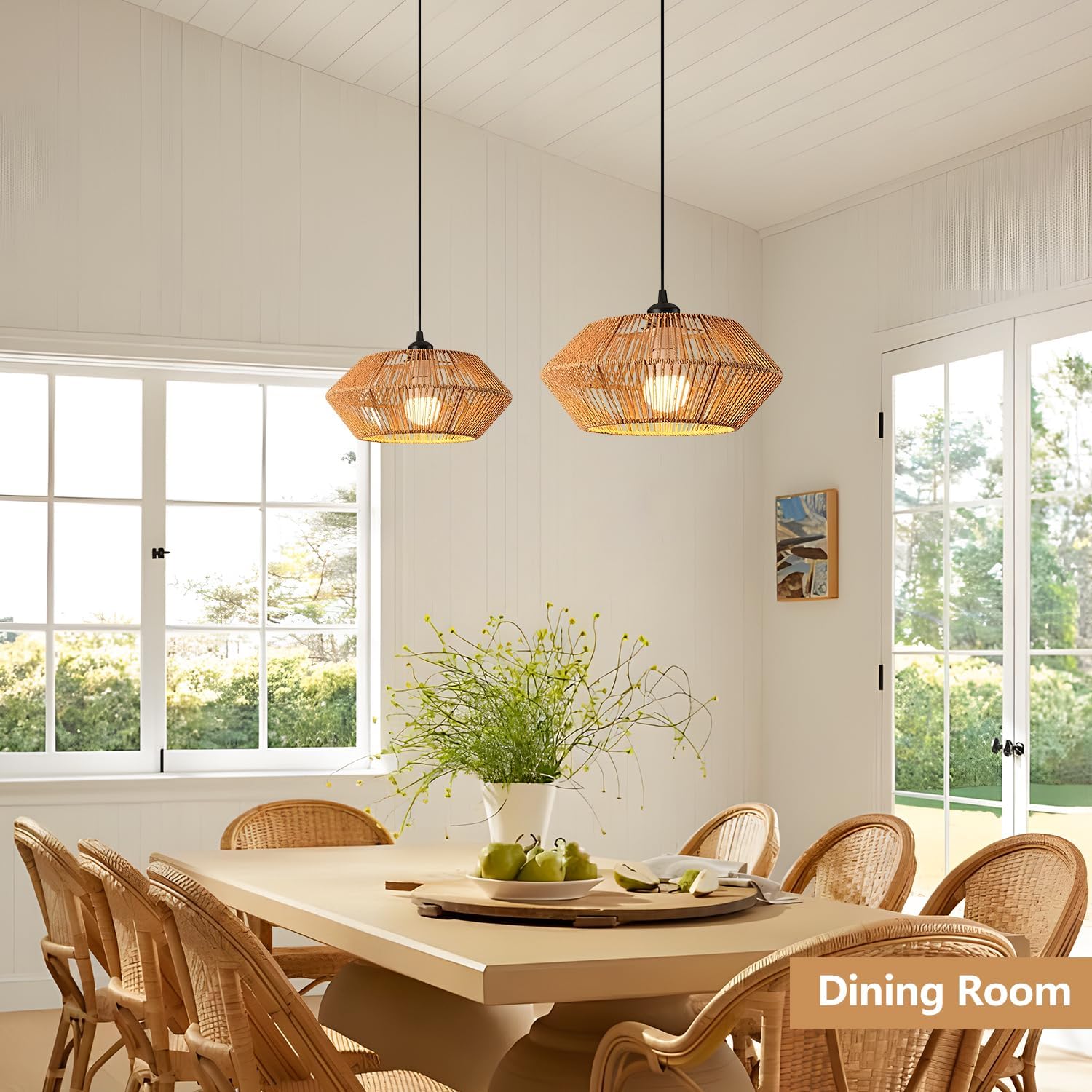 - 【Wide Application】This Hand-woven Hanging Lighting is made of delicate natural rattan rope material, high-quality wires and Natural solid wood base, hanging lights for bedroom,islands, dining rooms, kitchens, living rooms, hallways, cafes, bar, entryway, etc.